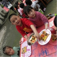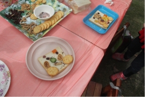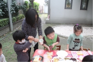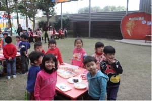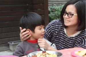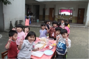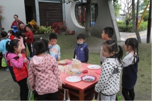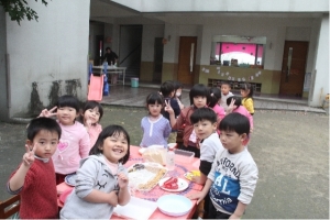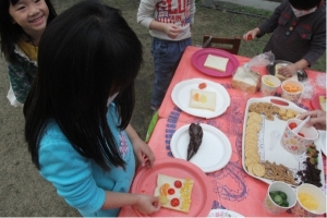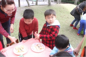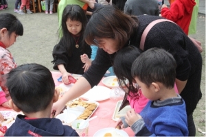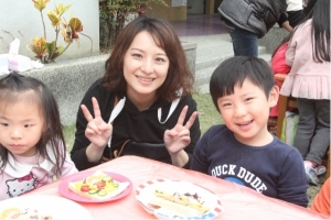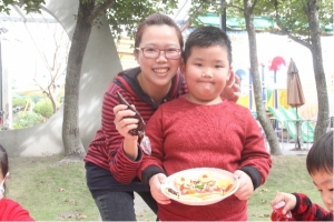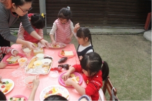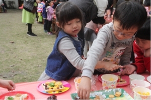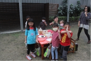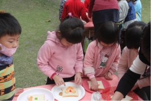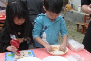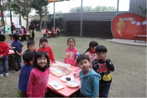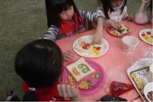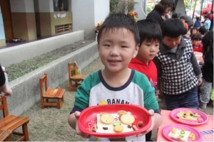 1.2.3開動囉~與好朋友坐在一起,享用自己做的創意臉譜,真好吃,自己動手做就是不一樣,每個孩子都把它吃光光耶! ^^