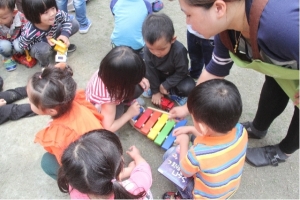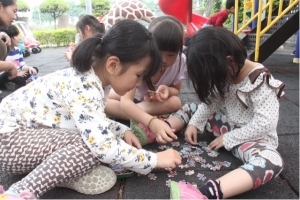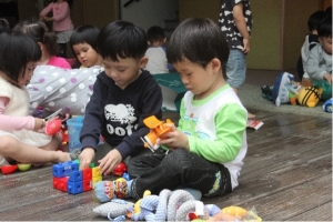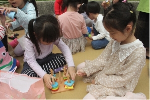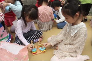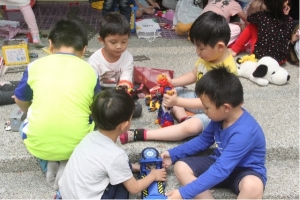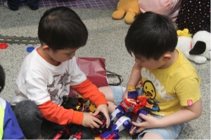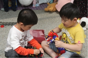 好開心呢!透過一起玩玩具的喜悅,學習跟朋友和諧相處,樂於分享與關懷,展現