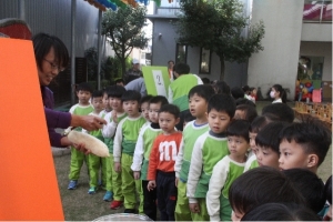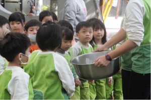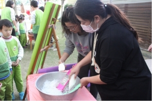 從一開始的磨米"削皮"刨絲"蘿蔔絲悶軟,到最後蘿蔔絲和米漿一起混合倒進蒸籠中,使用大火瓦斯蒸粿,每個步驟都讓寶貝充滿好奇心,非常認真的看著,最後,寶貝們也一起品嚐了美味好吃的菜頭粿喔,哇~這次活動寶貝收穫滿滿,更謝謝志工爸爸、媽媽、阿嬤的協助,有您們真好!