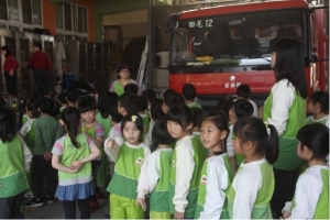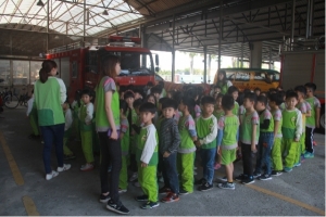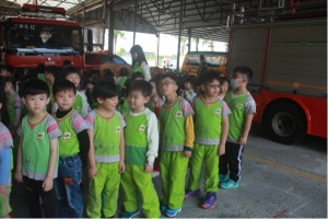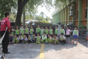 的參訪活動呢!最後,孩子們也大聲的跟田尾消防隊的消防叔叔、消防阿姨道謝-「謝謝您」。