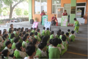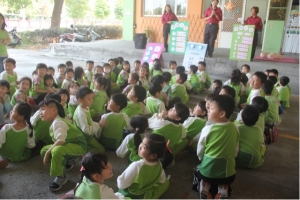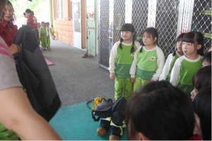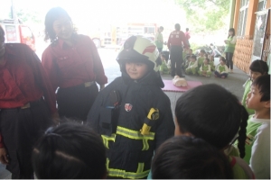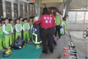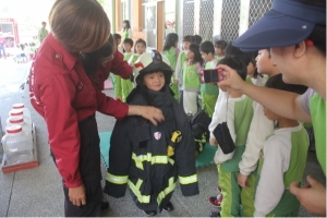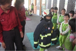 參訪活動準備開始囉!首先,消防阿姨介紹了發生火災時,我們要怎麼辦?