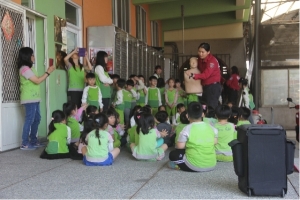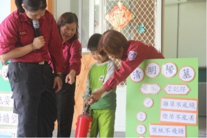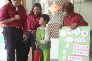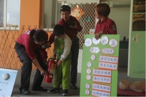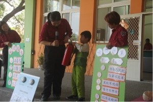 ☉介紹滅火器的功能,引導孩子如何使用滅火器