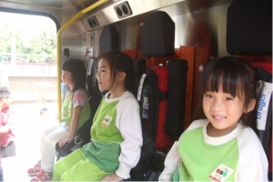 寶貝坐上消防車時,他們睜大眼睛認真觀察車內狀況,仔細聽消防叔叔的介紹,哇~真是好棒