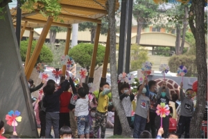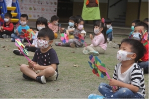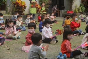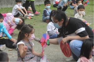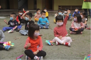 活動最後,孩子們拿著自己組裝、繪畫的兒童節禮物~風車在校園走走逛逛,看著風車轉