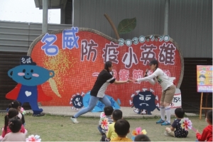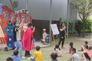 重要的!最後,口罩超人發起問題大考驗來考考小朋友,小朋友都能一一說出正確答案,哇!真