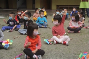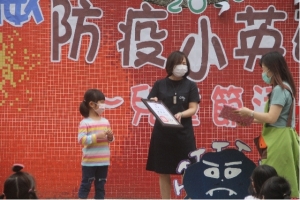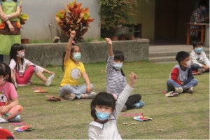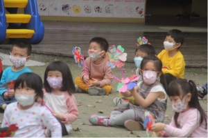 「兒童節活動~防疫小英雄」活動準備開始,孩子們分時段到戶外集合時,