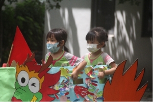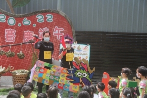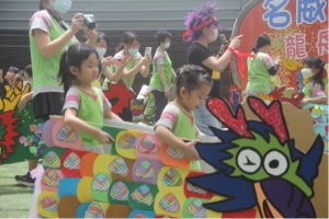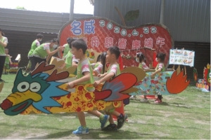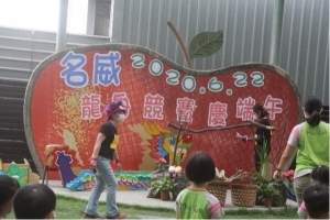 五月五過端午,11艘創意龍舟一字排開齊聚蘋果舞台,場面真是壯觀。名威寶寶走進校園,