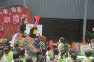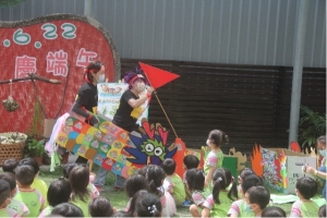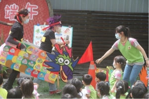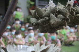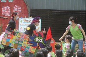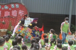 由來與習俗,帶孩子認識香包、菖蒲與粽子,一起唱唱跳跳端午節歌曲律動;介紹各班的創意