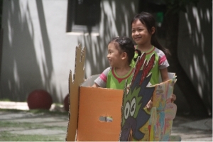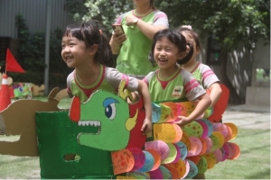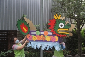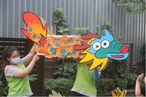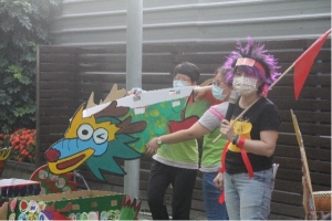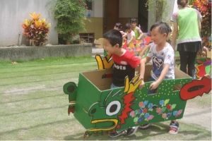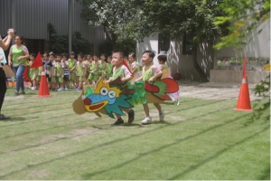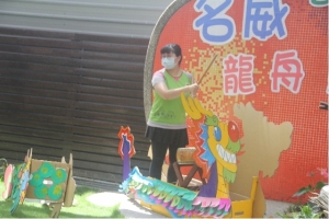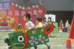 「創意龍舟划划划」活動開始囉!孩子非常興奮能乘坐親手製作的龍舟,興致高昂進行賽龍舟,嘿