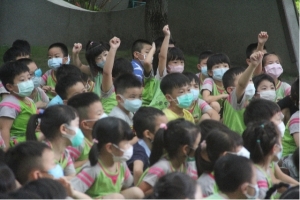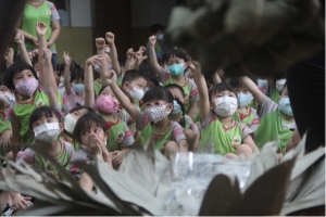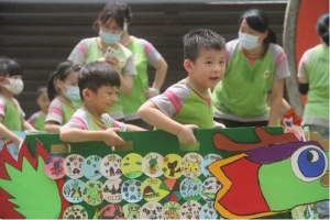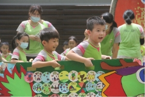 龍舟,每當有一艘龍舟抬高展示時,孩子們就高舉雙手大喊~