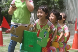 咻嘿咻努力往前衝,寶貝們臉上的專注神情與笑容,使這場活動變得更加有趣,在發揮團隊精神的
