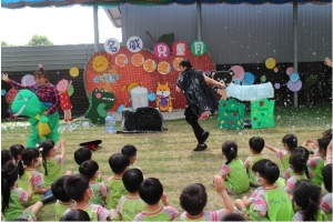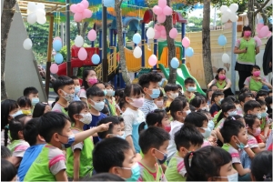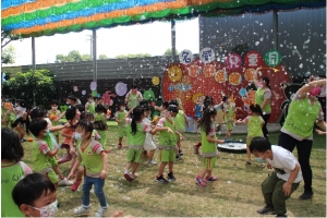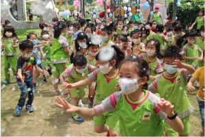 名威快樂兒童月系列活動~「歡樂泡泡趴」登場了,今天滿天的彩虹泡泡伴隨著孩子踏進校園,