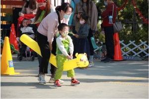 天氣雖炎熱,但名威寶寶旗鼓隊表演讓人驚艷、小獅子用力扭動的模樣讓家長直呼~好可愛喔,全體小朋友帶來舞蹈~發財發福中國年,祝大家虎年行大運,YA~ 在第二階段的親子趣味活動中,福虎步步高(踩高蹺)、飛虎一級棒(老虎空氣棒)、歡樂小財神,喚起大家的童心,還有、還有福運100(摩托車)也很好玩喔~