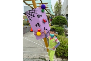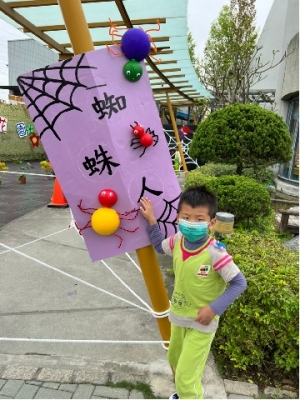 一早孩子到學校,一下車就看到大大蜘蛛網出現在迴廊,喔~~他的眼睛張大了,接著發現